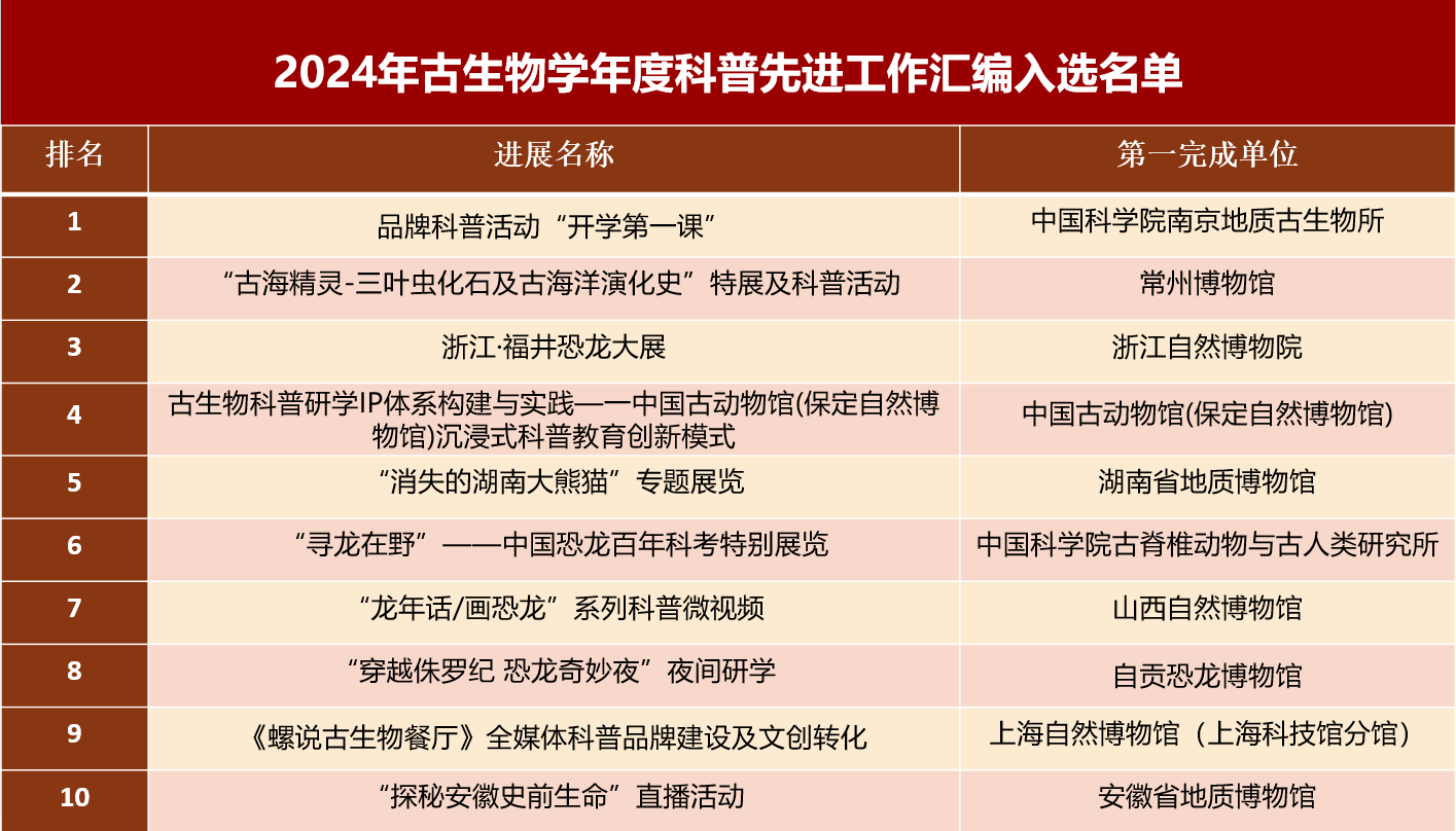 - [ 2025-10-27] 關于開展“2024年古生物學年度科普先進...